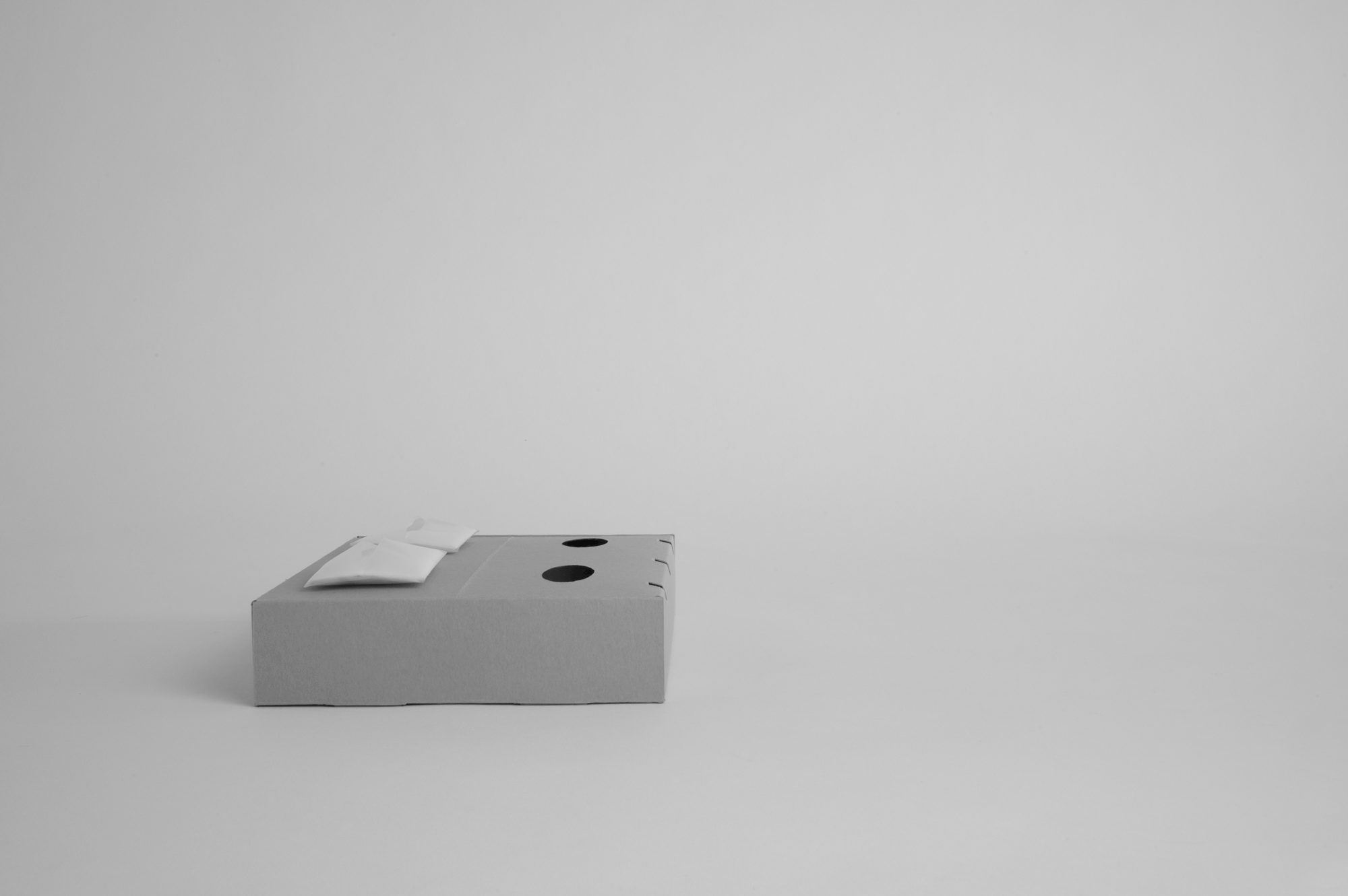 The result was HF05 – the Hyperfunctional solution. We started by increasing the number of ventilation openings relative to a standard hot-food delivery box. Through deconstructing familiarity of what a usual ventilation opening should look like, we enhanced the functions of the newly added ventilation openings by allowing them to serve as additional ventilation outlets when half open (refer to Fig. C), and to serve as holders to dispense serviettes from when fully open. Next, we readjusted the motion of how the cover of the box folds so that it can also possess the dormant function of a serviette dispenser, whilst at the same time not take up additional table space as it can be held in place through tucking its flaps into existing slots on the box(refer to Fig. D).